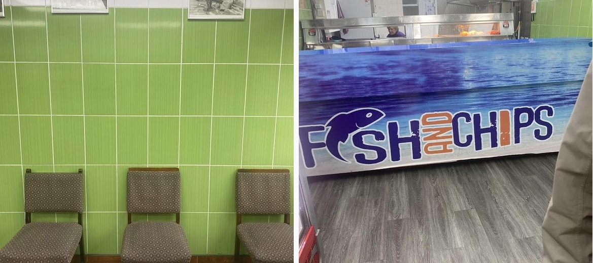 Very clean . Fish and chips not greasy and very yummy. We are also happy with the customer service. We would recommend it.